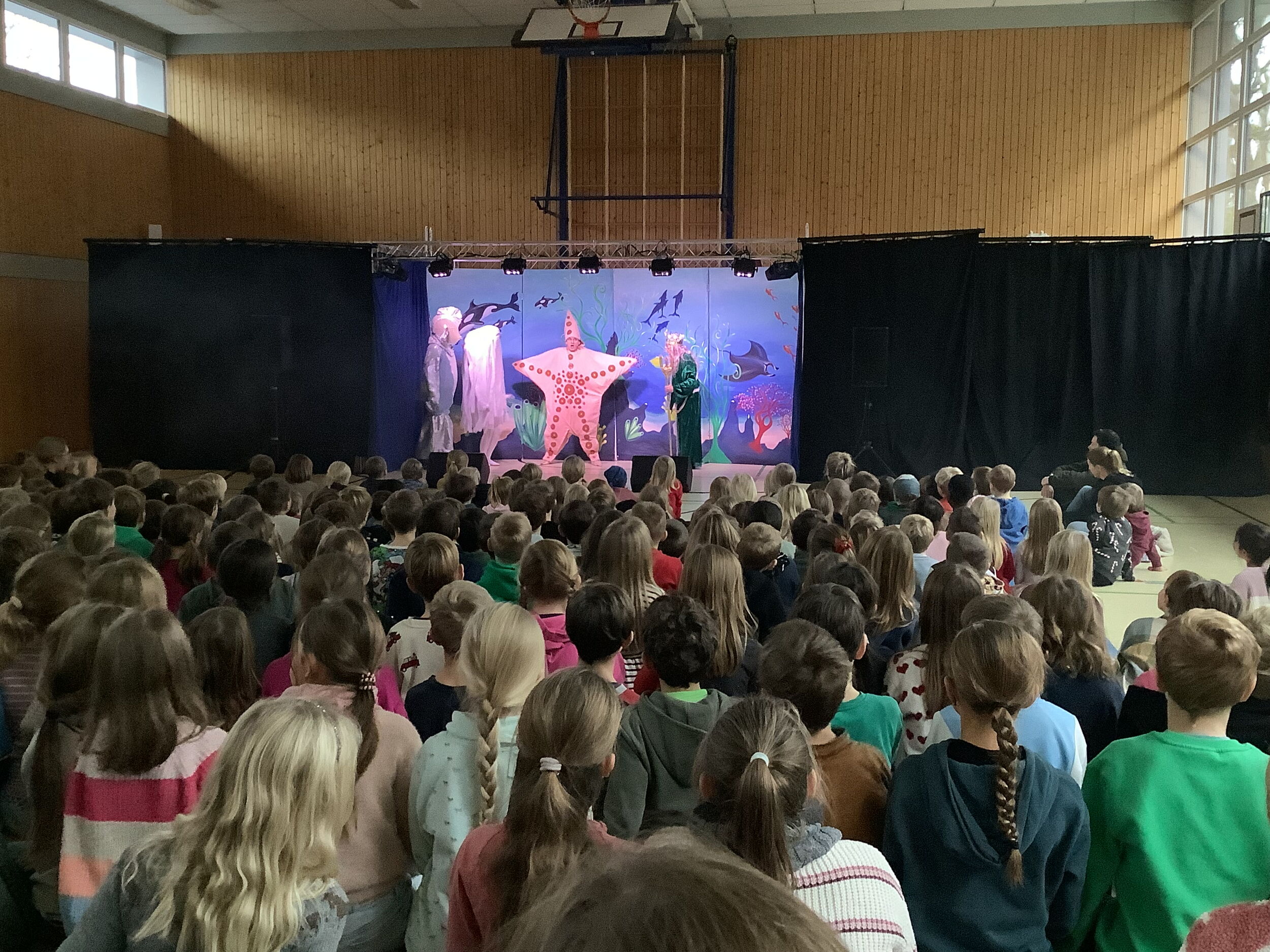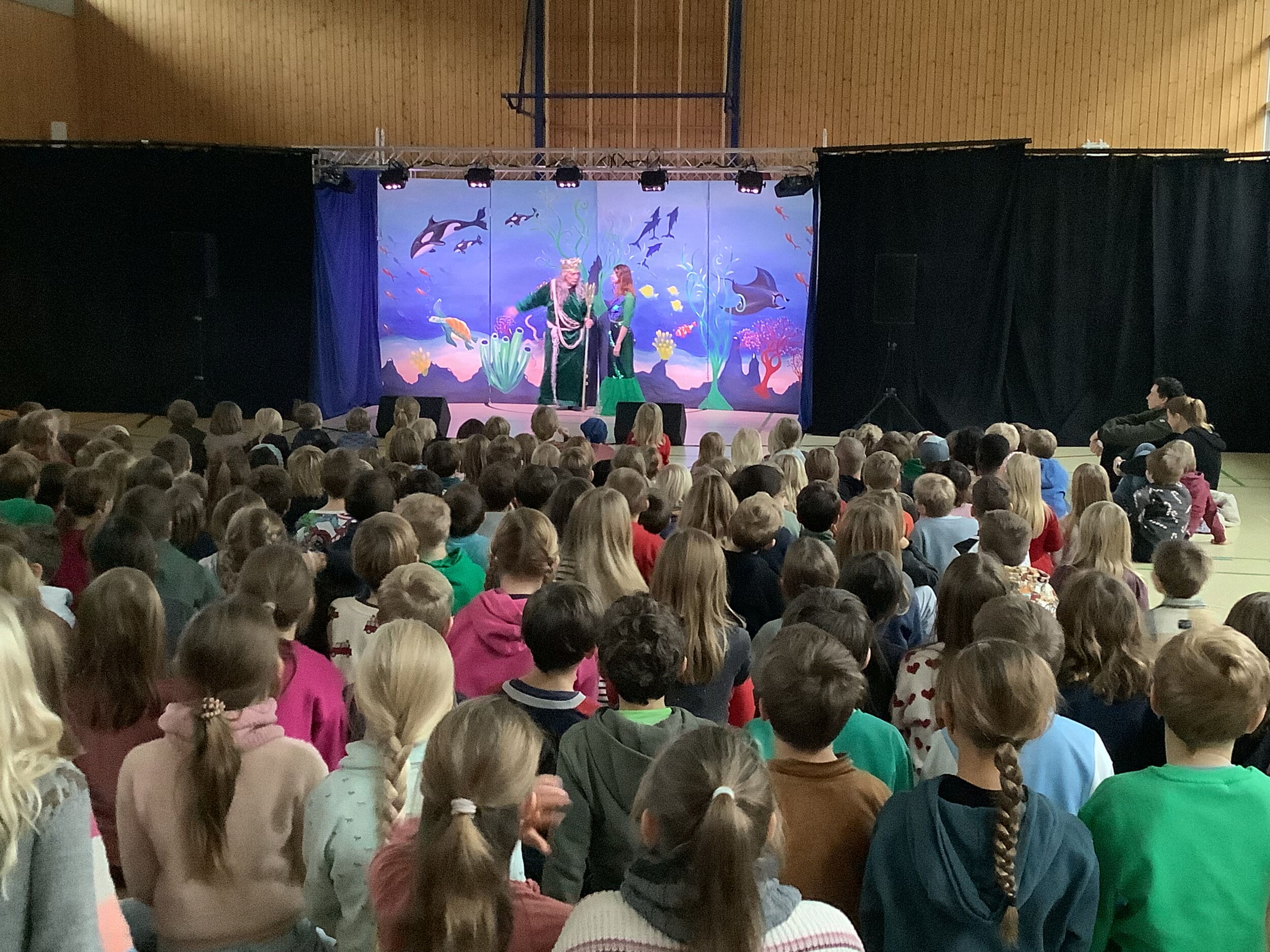 Am 05.12.25 war das Theater am Tremser Teich bei uns zu Besuch. Gespielt wurde „Die kleine Meerjungfrau“. Die Kinder sahen gebannt, wie der Meereskönig seine Tochter, die kleine Meerjungfrau, vor den Menschen warnt, sie sich aber dennoch in einen Menschen verliebt. Viele Verwechslungen und Zauberei machten das Theaterstück zu einem spannenden Erlebnis.